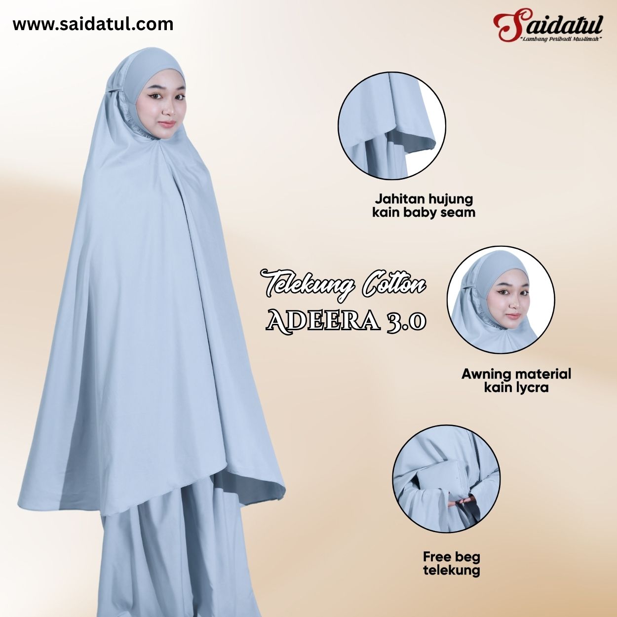 Telekung Cotton Adeera 3.0 – Muka Lycra